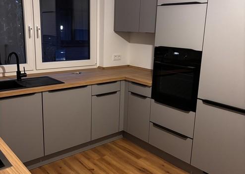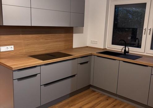 Auch die Küche ist neu und unbenutzt, in einem angenehmen Hellgrau mit stilvollen schwarzen Akzenten und modernsten Küchengeräten von Siemens ausgestattet.