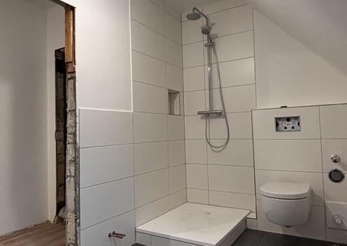 Die noch fehlenden Fußleisten, Türen und die Duschabtrennung im Bad OG werden kurzfristig installiert.