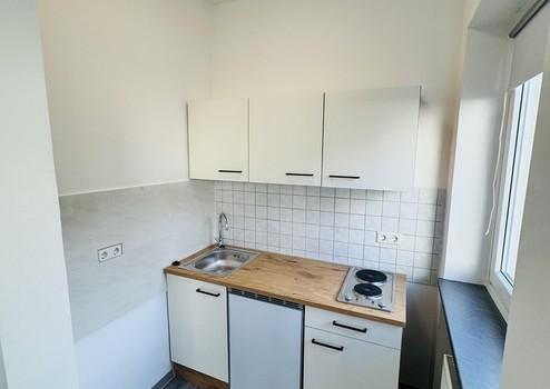 Der lichtdurchflutete Wohn- und Schlafbereich bietet vielseitige Stellmöglichkeiten und schafft ein angenehmes Wohnambiente. Die Wohnung ist mit einer neuen Einbauküche ausgestattet, die sowohl funktional als auch modern gestaltet ist.