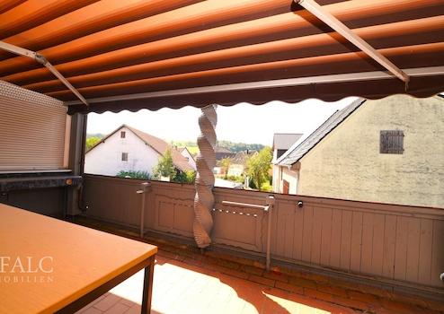 Zurück im Wohnzimmer führt eine Tür direkt auf die überdachte Südterrasse, die bei jedem Wetter ein idealer Ort für eine Tasse Kaffee oder entspannte Momente im Freien ist.