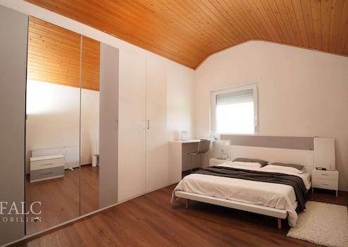 Das Haus ist mit hochwertigen Parkett- sowie Fliesenböden ausgestattet, die für ein stilvolles und pflegeleichtes Wohnambiente sorgen. In den beiden modernen Tageslichtbadezimmern wurde bei der Ausstattung ebenfalls auf Komfort und Funktionalität geachtet: Im Erdgeschoss finden Sie ein Badezimmer mit Dusche, WC, Urinal und Waschbecken vor, während Sie im Obergeschoss von einem Bad mit Wanne und Dusche empfangen werden.