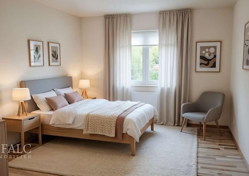 Vom Wohn/ Esszimmer aus gelangen Sie ins Schlafzimmer und ins Badezimmer mit Wannen- und Duschbad. Ein weiteres Zimmer rundet das Angebot im Erdgeschoss ab.