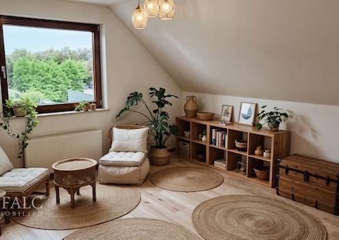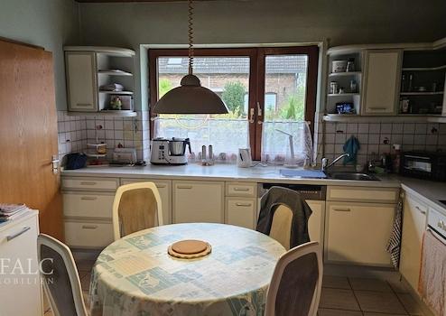 Von der Diele aus erreichen Sie das Gäste WC, die Küche und das große, lichtdurchflutete Wohn-Esszimmer mit vorhandenem Kaminanschluss. Von diesem gelangen Sie direkt auf die überdachte Terrasse.