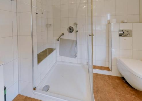 Badezimmer im OG saniert und hat ein Doppelwaschbecken, begehbare Dusche und WC aus dem Jahr 2009