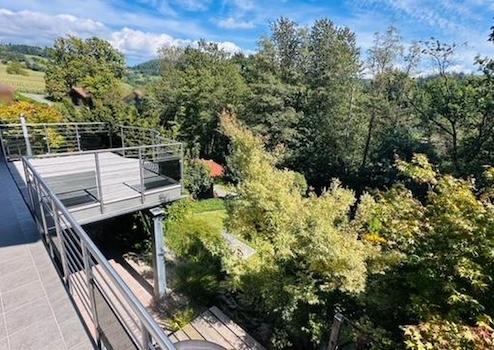 Großzügiger Außenbereich: Entspannen Sie auf dem großen Balkon mit modernem Edelstahlgeländer oder genießen Sie die Sonne im liebevoll und schön angelegten Garten – eine Oase der Ruhe.