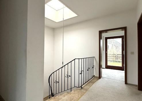 Im Obergeschoss befinden sich das Elternschlafzimmer mit Balkonzugang, zwei Kinderzimmer (eines ebenfalls mit Balkon), ein Arbeits- oder Gästezimmer sowie zwei Bäder. Diese klare Gliederung schafft Rückzugsräume für jedes Familienmitglied. Der Keller bietet zusätzliche Nutzflächen: Heizraum, Lager- und Vorratsräume sowie Platz für Werkstatt oder Hobbybereich. Die Heizungsanlage wurde modernisiert und regelmäßig gewartet.