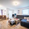 Der großzügige Wohnbereich bietet einen direkten Zugang zum Balkon.