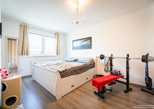 Ein gemütliches Schlafzimmer bietet ausreichend Rückzugsfläche, während das zusätzliche Zimmer flexibel als Kinder-, Gäste- oder Arbeitszimmer genutzt werden kann.