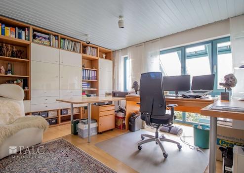 Zwei sehr geräumige Zimmer werden aktuell als Schlafzimmer und Büro genutzt. Hier lässt sich auch wunderbar ein Kinderzimmer herrichten. Ein zur Straße gelegener Raum könnte Ihr optimales Büro oder ein weiteres Kinderzimmer sein. Mittig gelegen überzeugt die Etage mit einem großen Abstellraum.