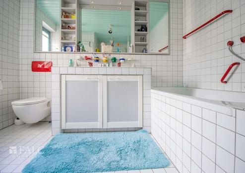 Das Gäste-WC und Badezimmer Ihres Hauses sind raumhoch weiß gefliest.