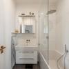 Das Badezimmer ist modern gestaltet, während das WC separat liegt, eine praktische und zugleich komfortable Lösung. Ein Abstellraum innerhalb der Wohnung sowie ein abschließbarer Kellerraum im Untergeschoss bieten zusätzlichen Stauraum.