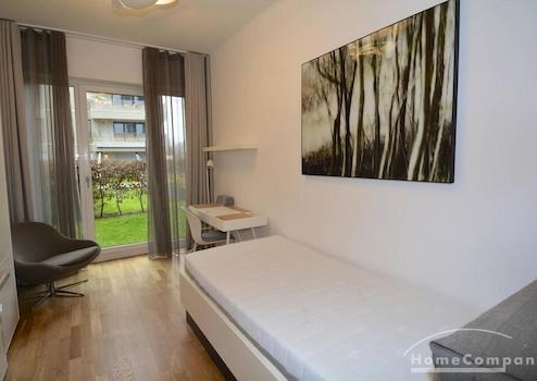 Modern eingerichtete und voll möblierte 3-Zimmer-Wohnung mit Fußbodenheizung. Die Wohnung verfügt über einen tollen Blick zum Park am Gleisdreieck. Sie liegt im Hochparterre und ein eigener Garten mit 60 qm2 ist direkt angeschlossen.
