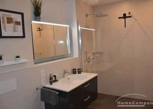 2 Zimmer Wohnung, neu möbliert 1. OG, sehr schön und komplett ausgestattet, Induktionsherd, Backofen mit Mikrowellenfunktion. Fußbodenheizung in allen Räumen. 2 x TV (in Wohn- u. Schlafzimmer), Schlafzimmer mit 160 cm x 200 cm Bett. Waschmaschine im sep. Waschraum in der Wohnung. W-Lan über HTP (30,- €). Miete 1100,- € inkl. Nebenkosten. Zuzügl. Heizung, Wasser und Strom nach Verbrauch (150,- € Vorauszahlung). Miete bei 2 Personen etwas höher. Ab 6 Monate bis länger zu mieten.