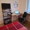 Zur Ausstattung der voll möblierten Wohnung gehört zudem: Mikrowelle, Waschmaschine, Hausrat und ein gemeinschafts- Fahrradabstellplatz.