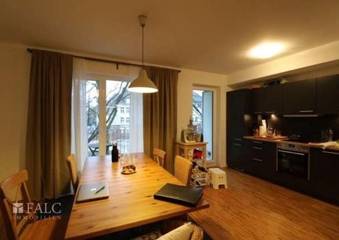 Qualitativ hochwertige Ausstattung: großer Wohn- und Essbereich, Parkettfußboden, offene Einbauküche, Herd mit Cerankochfeld, Geschirrspüler, modernes großes Vollbad, Waschmaschinenanschluss, Abstellraum im Keller, Balkon, guter Schnitt.