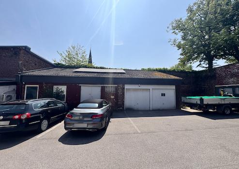 Der Außenbereich umfasst zwei separate Garagen sowie insgesamt acht PKW-Stellplätze (davon sieben im Freien), die ausreichend Parkmöglichkeiten für Mieter, Mitarbeiter oder Kunden bieten.