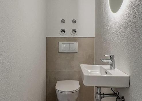- Exklusives Badezimmer mit moderner Regendusche und Keramiken namhafter Hersteller