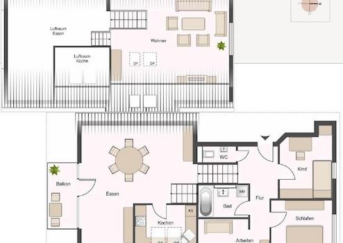 Die Wohnung besticht durch ein helles, offenes Raumkonzept, das großzügiges Wohnen auf mehreren Ebenen ermöglicht. Vom Eingangsbereich führt eine Treppe in den weitläufigen Essbereich, der direkt an die moderne Nolte-Küche anschließt. Wenige Stufen weiter öffnet sich der gemütliche, lichtdurchflutete Wohnbereich, von dem aus Sie die Sonne und den Blick ins Grüne genießen können. Ein offen gestalteter Arbeitsbereich ergänzt das Raumgefühl ideal und bietet zusätzliche Nutzungsmöglichkeiten. Zwei separate Schlafzimmer schaffen angenehme Rückzugsmöglichkeiten für Paare, Familien oder Homeoffice.