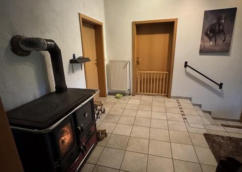 Im Flur des EGs kann über eine ‚Küchenhexe‘ (neu vor 3 Jahren) nicht nur eine kuschelige Wärme erzeugt werden, sondern mit dieser kann auch gekocht und gebacken werden.
