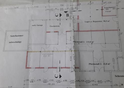 Von hier aus geht es direkt ins das massive ca 160 m2 Stallgebäude, das eine weitere Werkstatt mit Hebebühne, ca 40 m2 beinhaltet, (neu vor 6 Jahren).