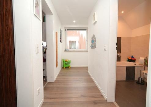 Im Obergeschoss finden Sie zwei klimatisierte Schlafzimmer vor, die ideal als Kinderzimmer dienen. Des Weiteren befindet sich hier das erste von zwei Badezimmern mit Dusche und Badewanne. Über einen weiteren Raum, der derzeit als Büro genutzt wird, gelangen Sie in den nachträglich ausgebauten ca. 40qm großen Spitzboden mit zwei neuen Dachgauben, der in der Wohnfläche einberechnet ist und genehmigt werden kann, also zur Fläche von 178m² berechnet wurde. Die Genehmigung ist bereits geprüft. In diesem Spitzboden befindet sich das große Elternschlafzimmer mit Klimaanlage und weiterem Badezimmer mit Badewanne. Derzeit beträgt die offizielle Wohnfläche 138,m².