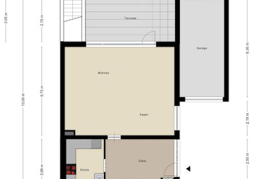 - Garage mit elektrischem Rolltor und Gartentüre