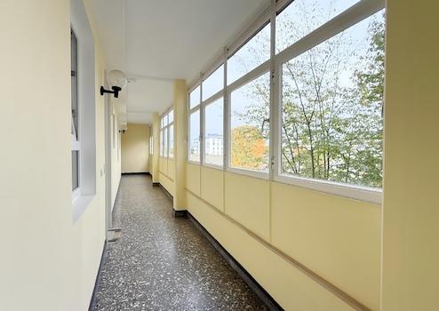 Sie erreichen die Wohnung vom Aufzug aus über einen separaten Flur, mit viel Tageslicht, welcher mit 3 weiteren Wohnungen geteilt wird.