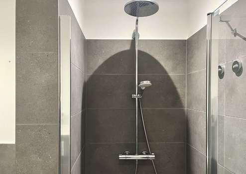 - Modernes Tageslichtbad mit ebenerdiger Dusche und Handtuchheizkörper