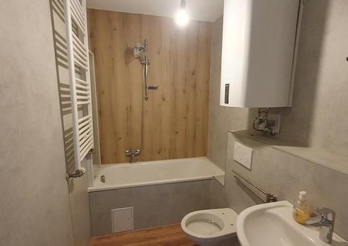 neues Bad mit Badewanne, WC, Waschbecken,