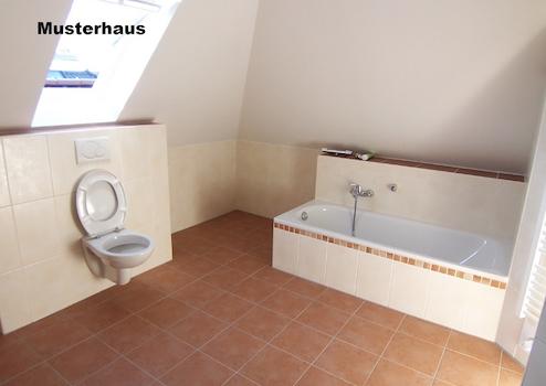 Es werden zwei hochwertige Bäder installiert. Das Badezimmer im Erdgeschoss verfügt über die folgende Ausstattung: großzügige bodentiefe Dusche, Wannenanlage mit Ablageflächen, Doppelwaschtisch mit Halbsäulen (Ablageflächen), Hänge WC & Bidet, Handtuchheizkörper, elegante Armaturen & Elemente, deckenhohe Verfliesung. Außer der Badewanne ist die Ausstattung im Badezimmer im Dachgeschoss identisch. Das Gäste WC im Erdgeschoss verfügt über die folgende Ausstattung: