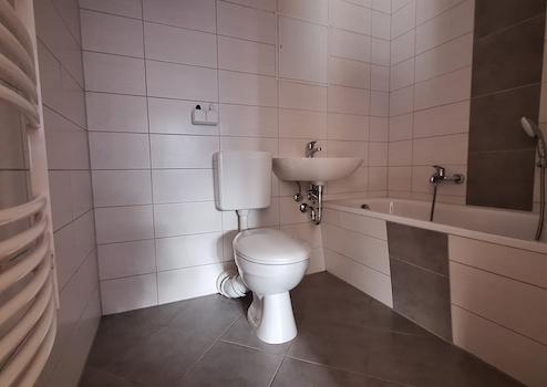- gefliestes Bad mit Wanne und moderner Ausstattung, Waschmaschinenanschluss, Handtuchheizkörper