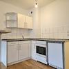 Das Bad verfügt über WC und Badewanne, die kleine Einbauküche über ein Ceranfeld mit 4 Platten, Backofen, Kühlschrank und Bartresen.