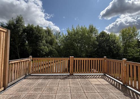 Im ersten Obergeschoss befindet sich eine Wohnung mit einem großzügigen Wohnzimmer, einem Tageslichtbadezimmer mit Badewanne und Dusche und einem Schlafzimmer. An die Küche wurde eine hochwertige Holzterrasse angebaut.