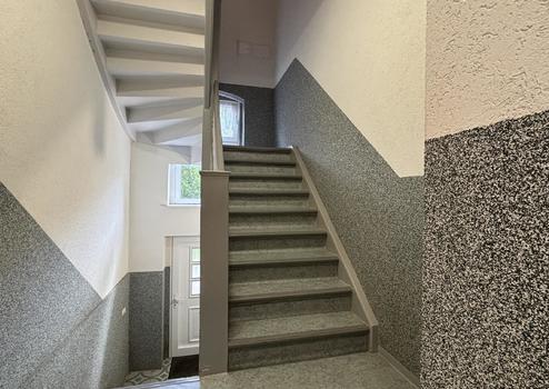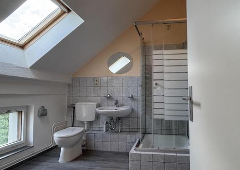 Im zweiten Obergeschoss befinden sich aktuell zwei Wohnungen, die auch gut zu einer Wohnung zusammengelegt werden können. Beide verfügen über ein Tageslichtbadezimmer mit Dusche, ein Wohnzimmer, einen Küchenbereich und ein Schlafzimmer.