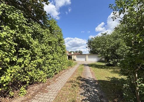 Hinter dem Haus wartet eine großzügige Rasenfläche darauf bewirtschaftet zu werden und lädt zum Relaxen ein. Eine Garage bietet Platz für zwei PKW. Der Bereich unter der Terrasse kann als Abstellraum für Fahrräder und Mülltonnen genutzt werden.