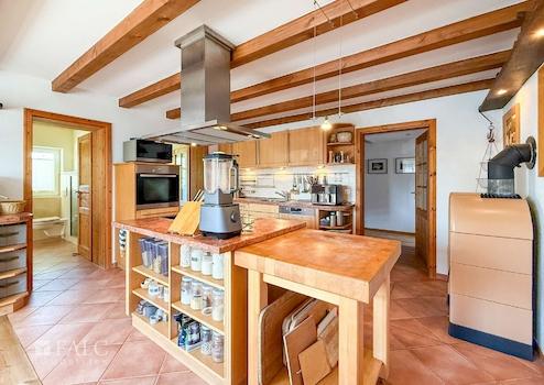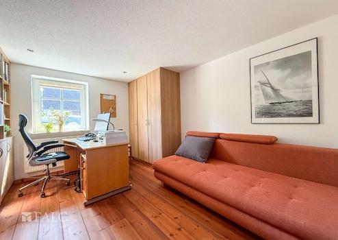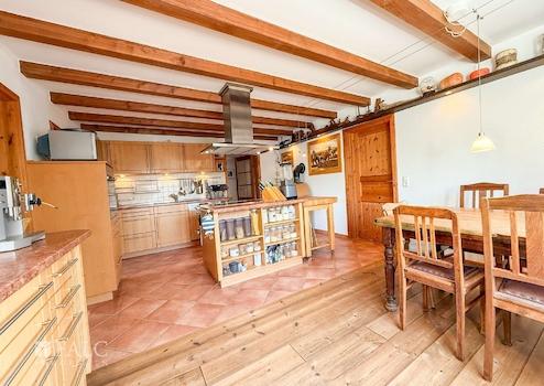 Schon beim Betreten des Hauses spüren Sie die besondere Atmosphäre: Warme Holzböden, sichtbare Balken und ein durchdachter Grundriss schaffen ein behagliches Zuhause mit Stil und Funktionalität. Die großzügige Wohnküche mit Kochinsel und Kamin ist das Herzstück des Hauses – hier trifft Gemütlichkeit auf modernes Design. Direkt angrenzend befinden sich ein helles Schlafzimmer und ein elegantes Badezimmer mit Dusche, Badewanne, WC und Fenster. Zusätzlich stehen Ihnen im Erdgeschoss ein separates Arbeitszimmer zur Verfügung.