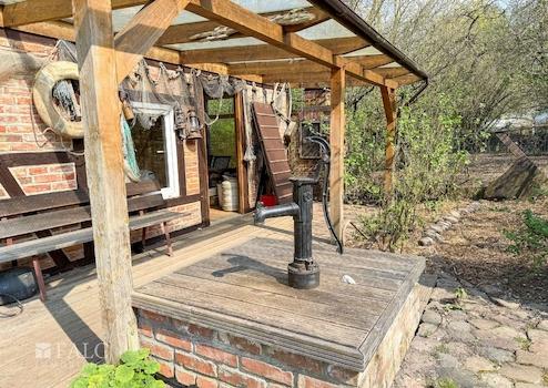 -Brunnen mit Schwengelpumpe und Hauswasserwerk