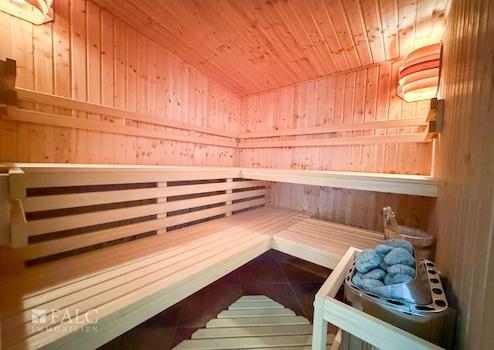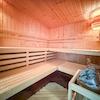 -Separater Raum: Wellnessoase mit Sauna, Dusche, Kamin und Sitzecke