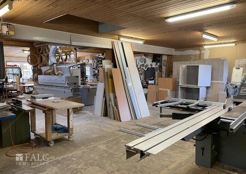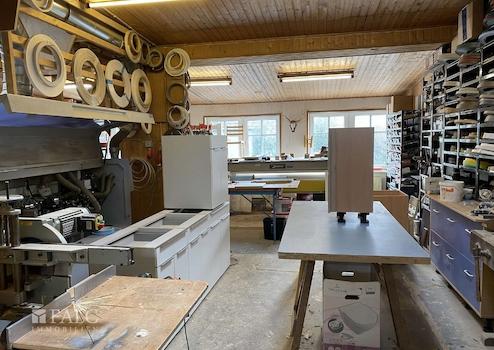 Die angrenzende Werkstatt ca. 228 m² wird derzeit als Tischlerei genutzt und ist aktuell vermietet. Sie bietet zugleich eine attraktive Einnahmequelle und unterstreicht das vielseitige Nutzungspotenzial dieser besonderen Immobilie.
