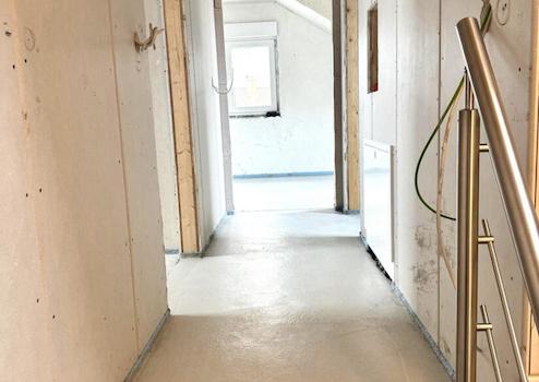 Dachgeschoss: Noch fertigzustellen, bereits geplante Ausbauoptionen für zwei zusätzliche Zimmer und ein Bad.