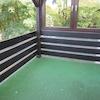 Der Gartenbereich ist eingefriedet, teilweise von Hecken umsäumt, umzäunt und verfügt über eine Rasenfläche.
