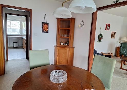 Das Esszimmer hat ist offen und kann bei Bedarf geschlossen werden .