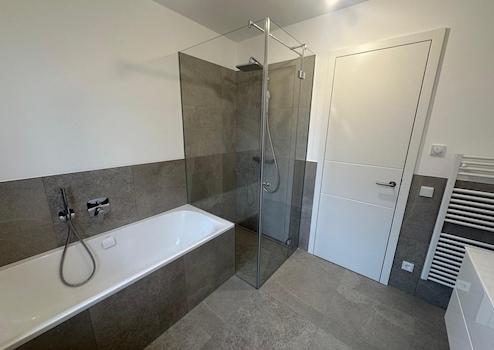 •Großformatige Badfliesen und schwellenlose Ganzglasdusche