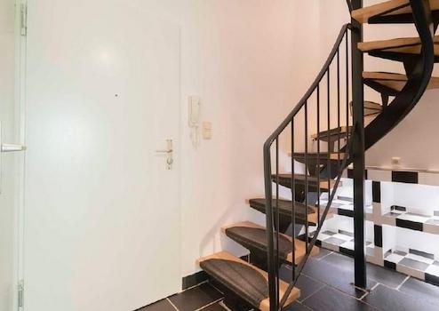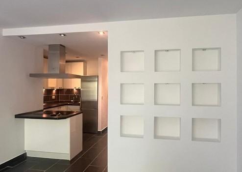 Die Wohnung bietet 4 Zimmer auf zwei Ebenen, zwei Balkone (einer überdacht), eine moderne Einbauküche mit Markengeräten sowie ein Bad mit Dusche und Eckbadewann und ein separates Gäste-WC. Zahlreiche Einbauschränke, Regale und Nischen runden die hochwertige Ausstattung ab.