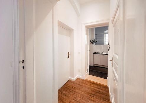 Die 36,02 m2 große Hochparterre-Wohnung überzeugt mit ihrem klassischen Altbaucharme. Sie umfasst einen kompakten Eingangsbereich, ein helles Wohn-/Schlafzimmer, eine separate voll ausgestattete Einbauküche mit einer Galerie sowie ein modernes Duschbad.