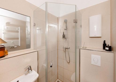 + Modernes Duschbad mit hochwertigen Sanitärobjekten und Handtuchheizkörper