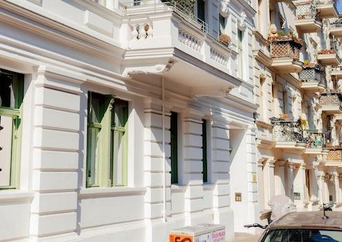 Trotz der zentralen Lage bietet die Wohnung eine angenehme Ruhe. Der großzügige Innenhof ist funktional gestaltet und verfügt über Sitzbänke, einen Sandkasten und überdachte Fahrradständer. Dank des Denkmalschutzes bleibt der einzigartige Altbaucharakter bewahrt und sorgt für eine geschützte Wohnkultur mit besonderem Flair.
