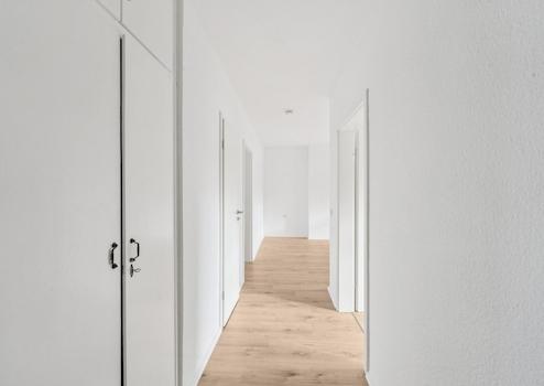 Der großzügige Wohnbereich mit direktem Zugang zum sonnigen Balkon schafft eine einladende Atmosphäre und lädt zum Wohlfühlen ein. Die Küche ist praktisch vom Flur erreichbar und bietet ausreichend Platz für gemeinsames Kochen. Zwei weitere Zimmer können flexibel als Schlafzimmer, Kinderzimmer oder Homeoffice gestaltet werden. Das modernisierte Badezimmer überzeugt mit stilvollem Design und pflegeleichten Materialien.