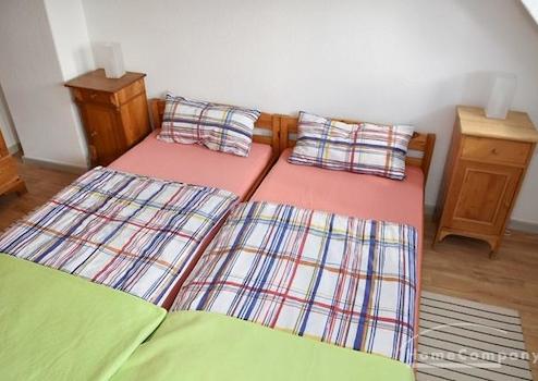 Schlafzimmer mit 2 Betten 100x200 cm, Nachtkonsolen und Kleiderschrank.