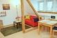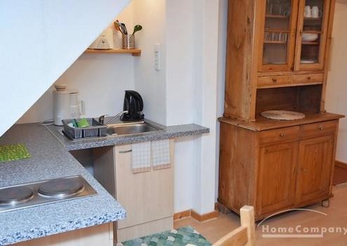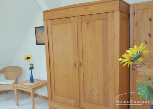 Mehrfamilienhaus in ruhiger Straße. Modern möblierte Wohnung im 3.OG, Dachgeschoss in Alt-Ricklingen, Kiefernholzmöbel.